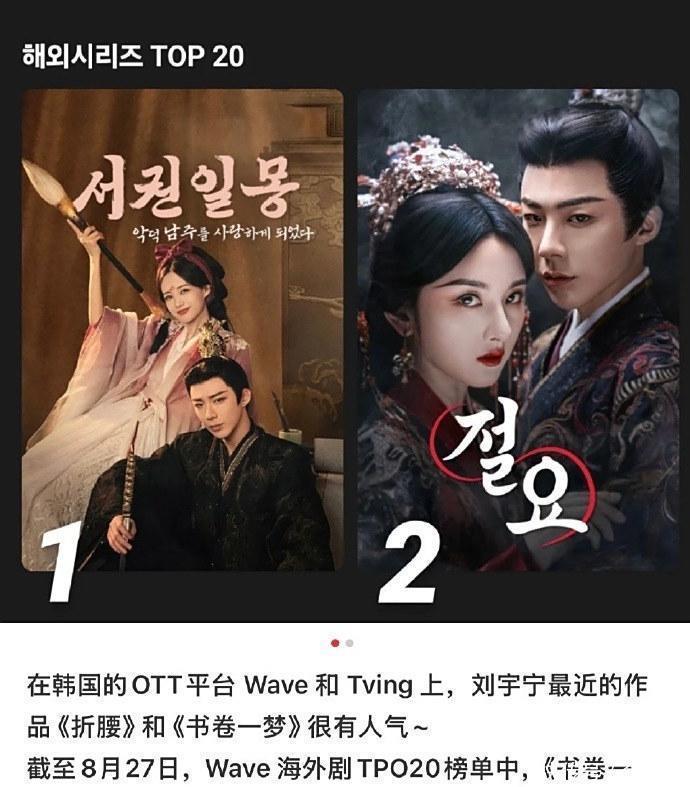 在韩国Wave平台稳坐外洋剧TOP1,荟萃6周蝉联亚洲东说念主气冠军,韩媒齐径直把2025年叫作“刘宇宁年”。