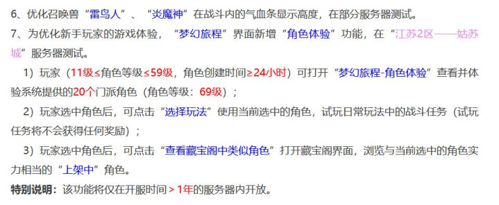 新增了一个生手变装体验功能,玩家11级以上59级以下,创建时分大于24小时的,不错在变装体验里体验系统提供的20个门派69级的变装。