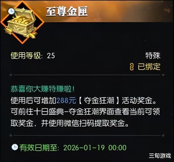 此外,官方还开启打金条活动,玩家参与游戏活动就有契机掉落“金条”,比起以往5块、50块的金条,此次径直288元打在玩家的现款账户里,竣事浅薄打架就能赚收益模式。