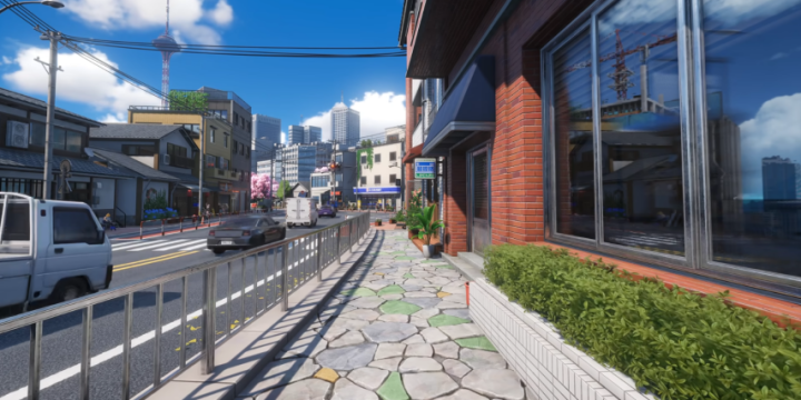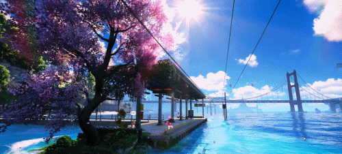 雨天的街谈上,霓虹灯在积水里泛着光,路东谈主抱着头跑过十字街头,车窗上的雨滴逐渐滑落;薄暮时间,海上列车穿过樱花林,花瓣被奔驰的风卷起,在空中打转;就连天上的云,都不再是贴图,而是有体积、有流动感的3D云层。