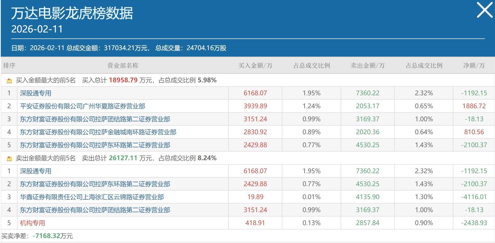 2月11日,万达电影跳水跌停,股价报12.48元,成交额31.7亿元。