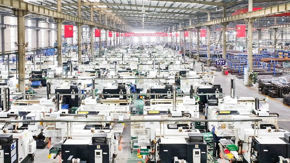 走进苏强格液压坐褥车间,金工、油缸、锻压、锻造等8条坐褥线全速开动,800多台数控车床高速运转,机械手臂精确完成切割、热锻、加工、电镀等全过程工序。近600名职工全员到岗,一件件液压管件扣问快速下线,处处是忙碌有序、劲头齐备的坐褥场景。